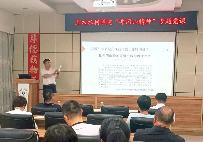 为常态化推进党史学习教育,持续强化能力作风建设,9月5日,必赢线路检测中心经理郑鑫结合8月下旬赴井冈山培训成果,以“传承井冈山精神,推动高质量发展”为主题,为全体教职工讲授专题党课。
