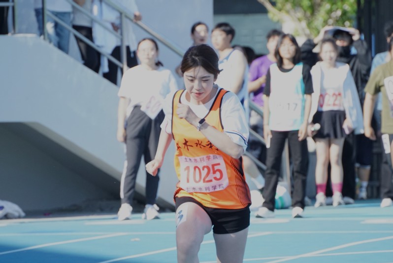 径赛赛场上,时间仿佛被按下了快进键。土木学子如离弦之箭般冲出起跑线,当第一个身影冲过终点线时,雀跃的欢呼瞬间点燃全场,那扬起的手臂、绽开的笑容,成了赛场上最鲜活的青春注脚。800米、1500米、3000米、5000米的赛道上,土木学子迈着坚定的步伐,一步一步丈量着坚持的意义。汗水顺着脸颊滑落,浸湿了衣衫,呼吸急促,双腿发酸,但他们从未停下脚步——因为耳边有队友“再坚持一下”的呐喊,心中有“不能放弃”的信念。