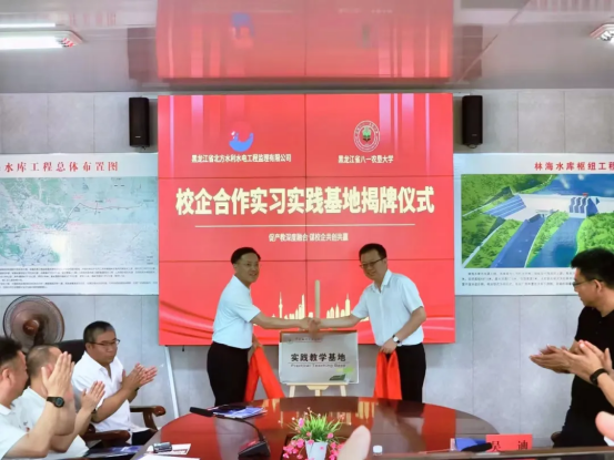最后,双方领导共同为必赢线路检测中心-黑龙江省北方水利水电监理有限公司校企合作实习实践基地揭牌。