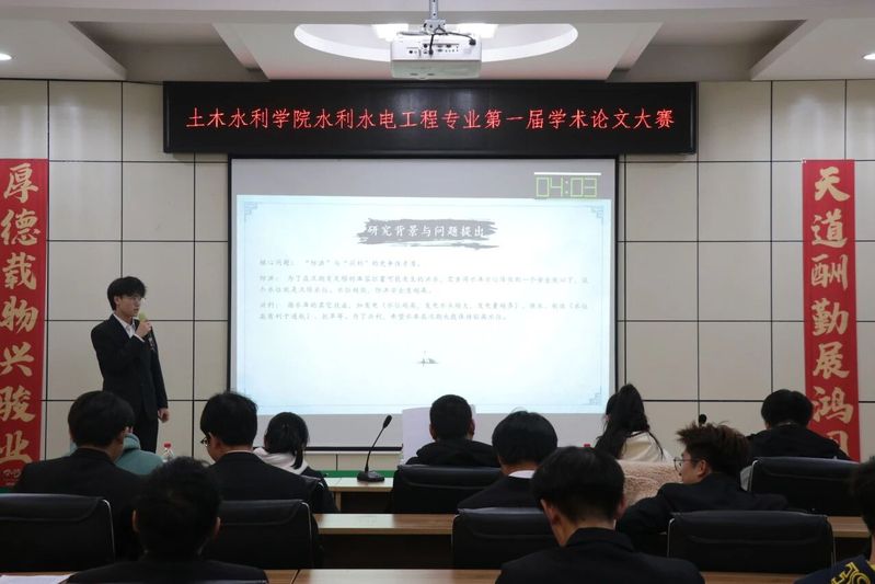 竞赛聚焦水资源、农业水利、环境水利、智慧水利等核心领域,鼓励员工立足专业领域,通过查阅文献、自主探究、精心排版,独立完成学术论文的撰写。大赛自启动以来,经班级宣传、专业动员等多渠道广泛征集,活动反响热烈,累计吸引200余名员工踊跃报名,有效激发了同学们的参赛热情与科研积极性。经学院初审、专家评审两轮严格筛选,共15名选手晋级决赛答辩。决赛分为自我陈述和答辩两个环节,选手围绕研究背景、创新点、研究方法、实践应用价值等核心内容进行阐述,展现了扎实的专业功底与清晰的逻辑思维。