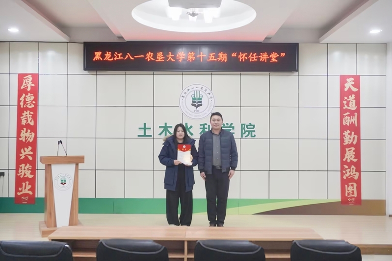 分享环节中,门佳美结合自身求学与职场奋斗经历,围绕行业发展趋势、职业生涯规划、核心能力提升等关键话题进行了分享。她以生动的案例和真挚的感悟,讲述了从校园到社会的转变与成长,为在校生提供了宝贵的借鉴与启发。在互动环节中,同学们踊跃提问,门佳美均给予了细致耐心解答。最后,将天宇为门佳美颁发了“怀任讲师”聘书,赠送了校园文创纪念品,以表达对员工的衷心感谢和敬意。