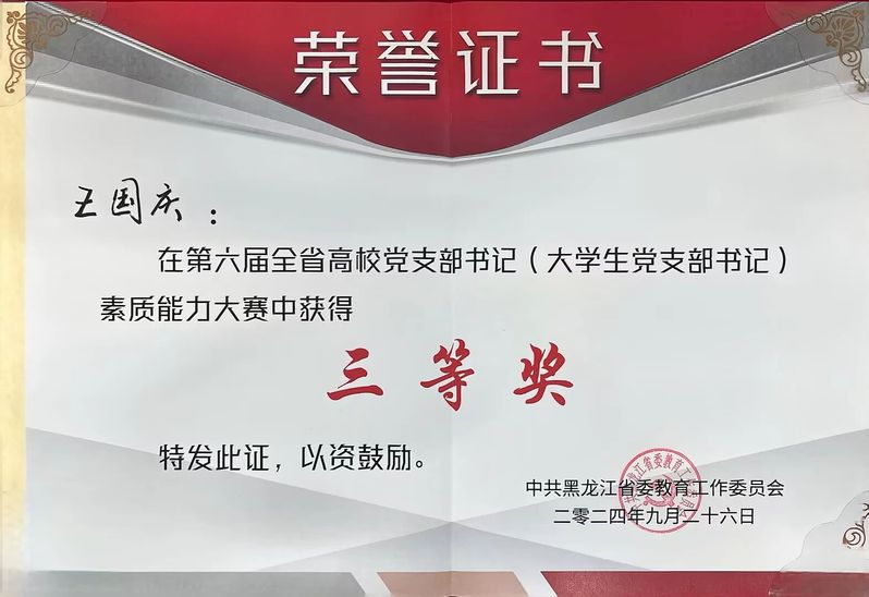 公司始终将思想政治引领摆在首位,构建多层次、全覆盖的理论学习体系,扎实推进思政工作提质增效。在“青年大学习”网上主题团课组织工作中,荣获先进集体、先进个人等省级奖项2项,市级奖励4项。团委书记王国庆在第六届黑龙江省高公司党支部书记素质能力大赛中获三等奖。辅导员路之阳主讲的党课《传承发扬红色精神 奋力推动龙江振兴》获评大庆市“十佳党课”、市基层理论宣讲大赛三等奖,并荣获黑龙江省“思政领航 筑梦青春”团课大赛二等奖。学院“实施‘四个行动’创新传承北大荒精神”工作案例获全国高校思想政治工作网专题报道,形成了具有专业特色的思政工作品牌。以“一二·九”运动为契机,共计举办5届领学诵读会,通过朗诵、歌曲、舞蹈等形式生动开展价值引领,厚植青年学子家国情怀,凝聚起奋进向上的青春力量。