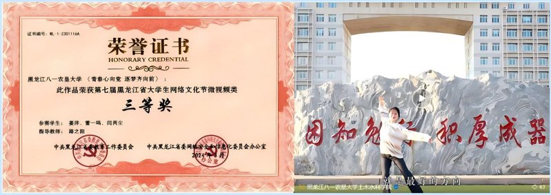 辅导员参加“党史百年天天读”栏目相关作品在中共中央组织部“共产党员”、“龙江先锋”等平台同步发布,产生了广泛正向影响,主讲党课《传承发扬红色精神 奋力推动龙江振兴》先后荣膺大庆市“十佳党课”、市基层理论宣讲大赛三等奖,并荣获省级团课大赛二等奖。由师生共同倾情打造的《人世间》音乐MV,通过细腻的镜头与深情的演绎,在2022年冰城高校微视频大赛中脱颖而出,成功斩获“最佳短片奖”的殊荣。有效提升了育人工作的感染力与覆盖面。